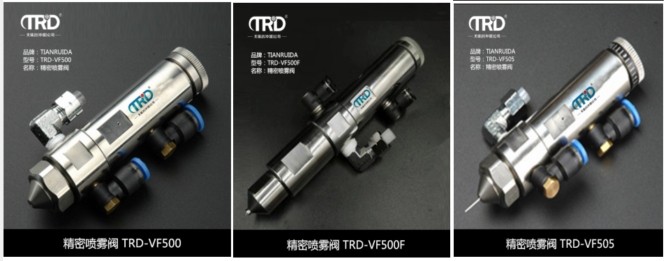 噴霧閥適用高粘度流體,尤其是黏度低于1000cps的流體。水的比重是1cps,而黃芥末醬的黏度是2000cps上下。要想采用一個適合的噴霧閥,就需要充分考慮膠閥本身的噴涌視角和模塊。模塊保證流體在噴涌前被做霧化,而在噴涌后,又可以快速地修好原來情況,那樣便可避免流體在閥內堵塞。噴霧閥多用以三防漆涂敷流體種類。