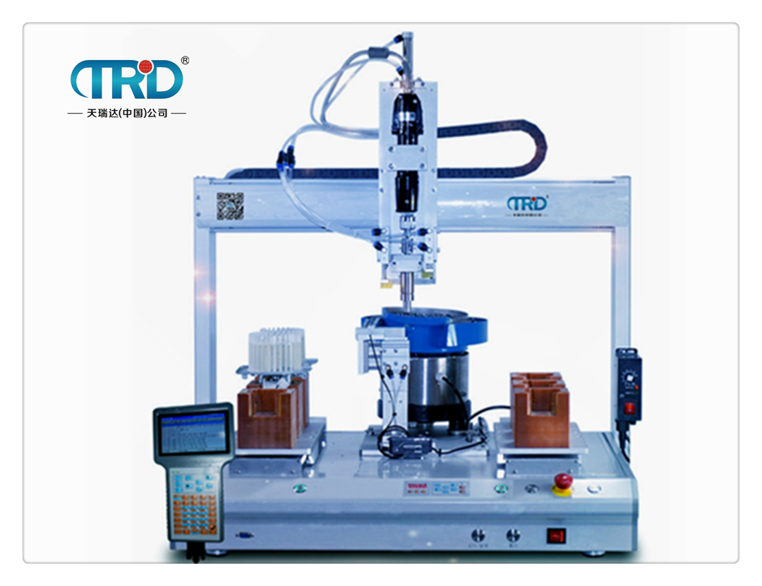 TS-4331雙平臺自動螺絲機可對各種工件進行自動鎖螺絲作業(yè)。采用真空吸螺絲方式,靈活性強,通用性好。克服了風吹螺絲不能送長徑比小1.2的特點,也克服了磁性吸螺絲方式不銹鋼螺絲不能吸的特點。自動螺絲機操作簡單,生產效率高、送螺絲可靠性高,初學者也能達到熟練工人的打螺絲效果。本機采用簡易快速地輸入鎖附程序,其軟件具有智能檢測功能,可檢測漏鎖、浮鎖、滑牙等。