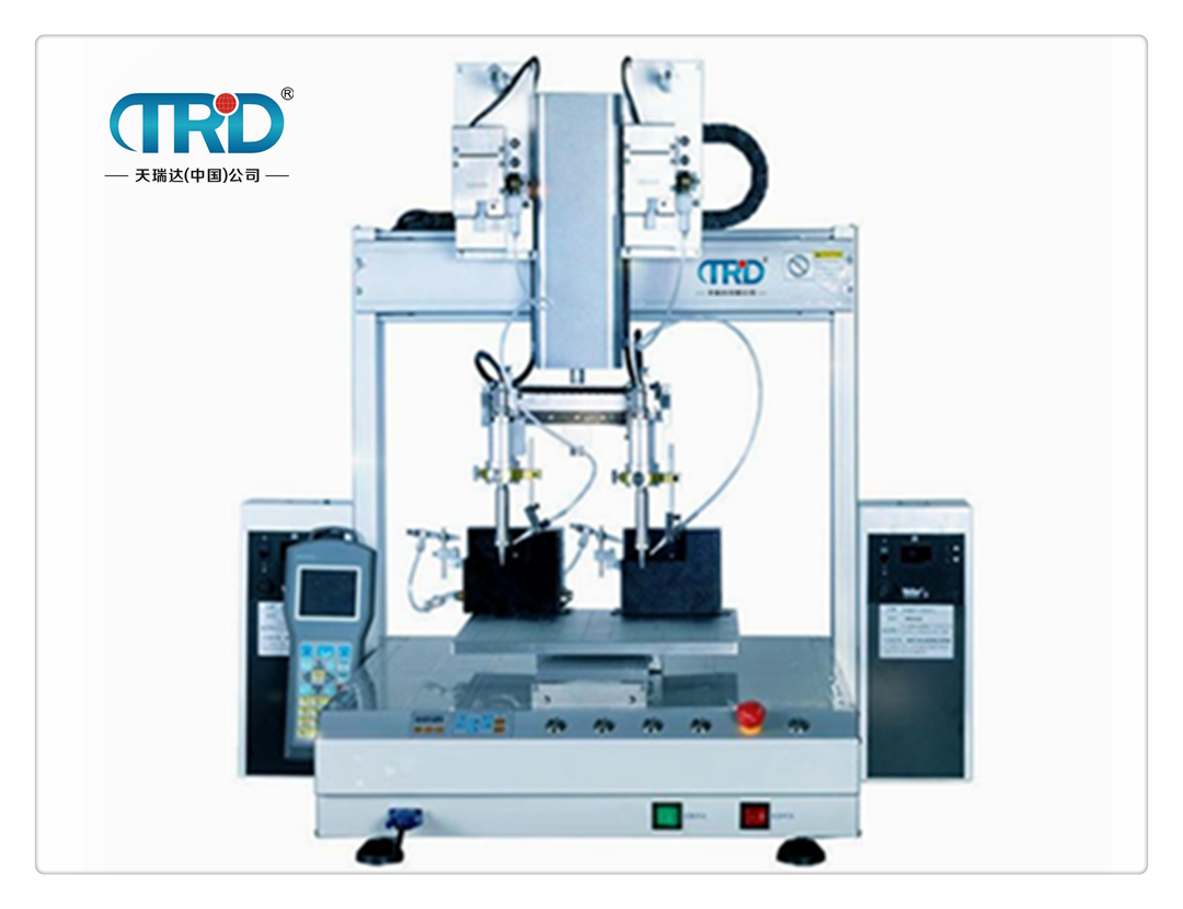 TH-4210雙頭自動焊錫機可對各種工件進(jìn)行高速拖焊,點焊,斜線焊接等。解決了人工重復(fù)性焊接動作出現(xiàn)的焊點不均勻、虛焊等現(xiàn)象。我們的優(yōu)勢是焊點一致性好,品質(zhì)穩(wěn)定。自動焊錫機操作簡單,生產(chǎn)效率高、焊接質(zhì)量好、環(huán)保又節(jié)能、初學(xué)者也能達(dá)到熟練工人的焊接效果。本機采用簡易快速地輸入焊錫程序,其軟件并具有強大的編輯功能,可輕易、快速的完成程序教導(dǎo)。