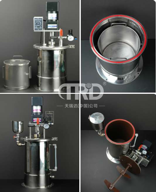 產品用途 一般常見UV膠、silicon、EPOXY、紅膠、銀膠、A B膠、COB黑膠、導電膠、散熱鋁膏、瞬間膠、熱熔膠。運用行業:光學、光電行業生化行業、光伏太陽能行業、SMD / SMT、表面貼裝半導體、制造行業、醫藥行業、LCD / LED、實驗室、電子元器件行業等 產品特點 ◆ 攪拌TANK使用內部容器,方便液體的攪拌、投料、洗滌。內部使用TEFLON圖層,適合使用嫌氣棄性溶液 ◆ 桶身、桶蓋均采用不銹鋼精密制成,不易與化學物質產生反應,不易變形; ◆ 表面拋光處理,密封性好,通用于一般液體; ◆ 配有安全閥自動卸壓裝置,耐高壓; ◆ 使用時可將膠水原包裝直接放入桶內,用完無需清洗,維護方便 ◆ 專業用在大點膠量的場合,對保持點膠閥系統點膠的精確度非常重要。 ◆ 每個液料壓力桶都配有精密恒壓調壓閥,維持從壓力桶至點膠閥的流體壓力。液料壓力筒的開關是簡單的夾緊方式,結構上內部面和下部面相同,可以使用內部容器。